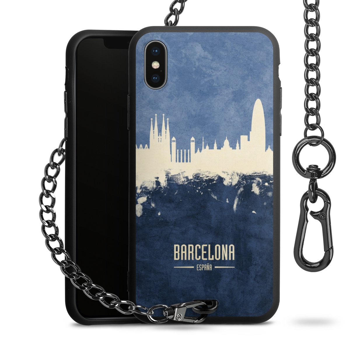 • Mattschwarze Handyhülle mit Metallkette
