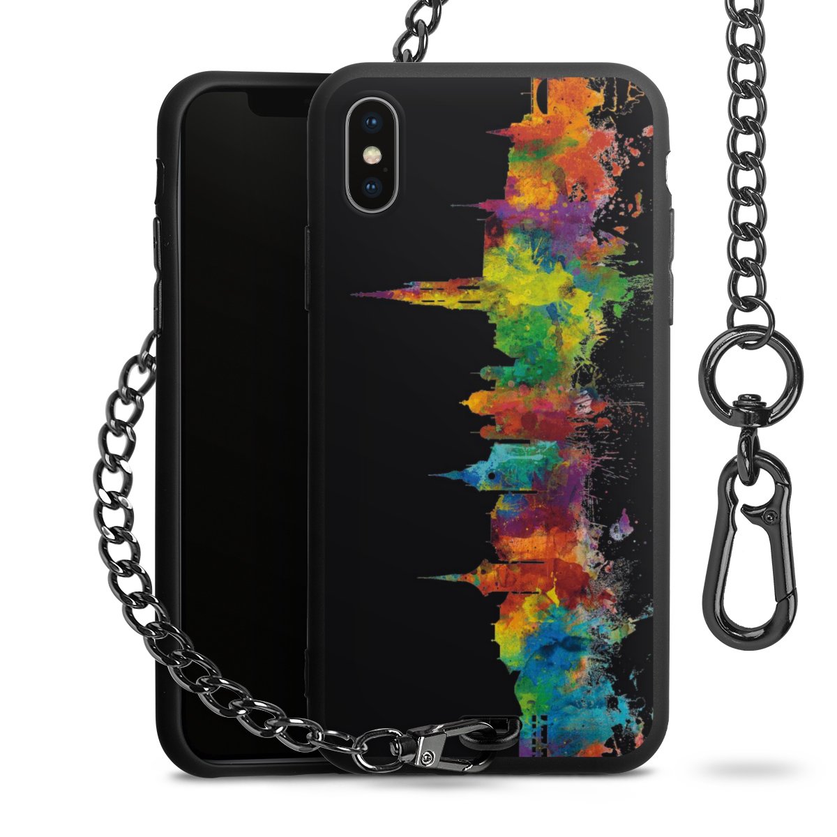 • Mattschwarze Handyhülle mit Metallkette
