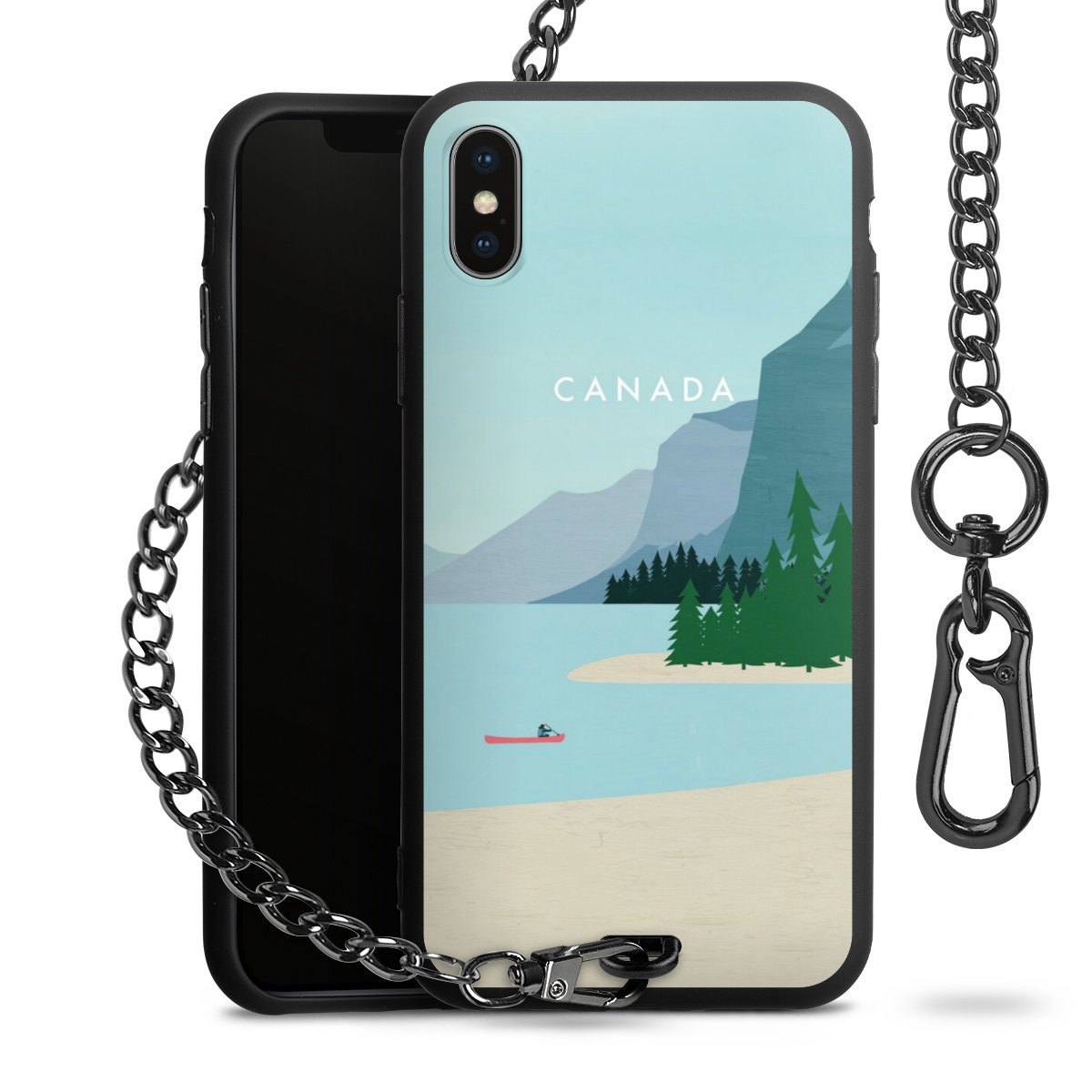 • Mattschwarze Handyhülle mit Metallkette