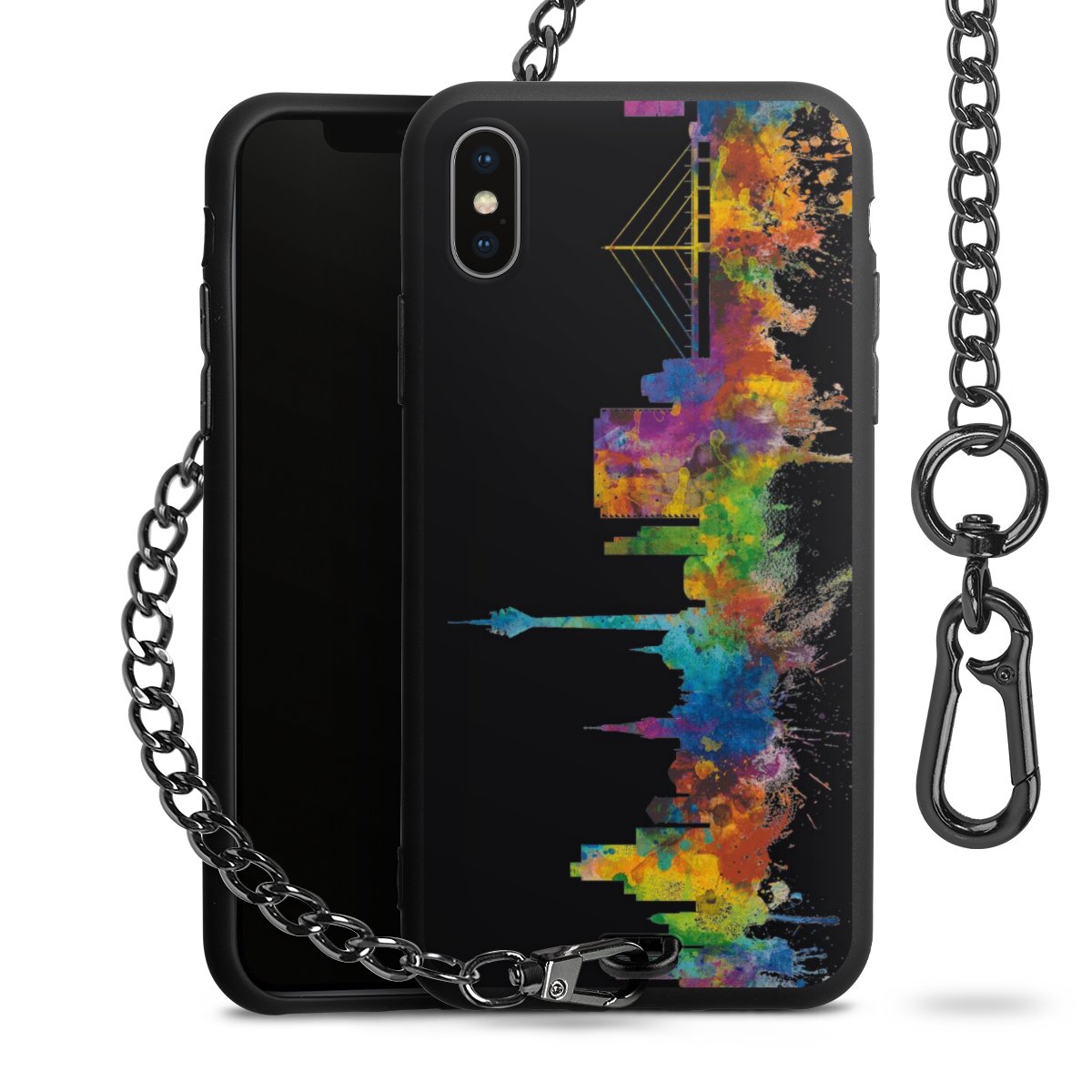 • Mattschwarze Handyhülle mit Metallkette