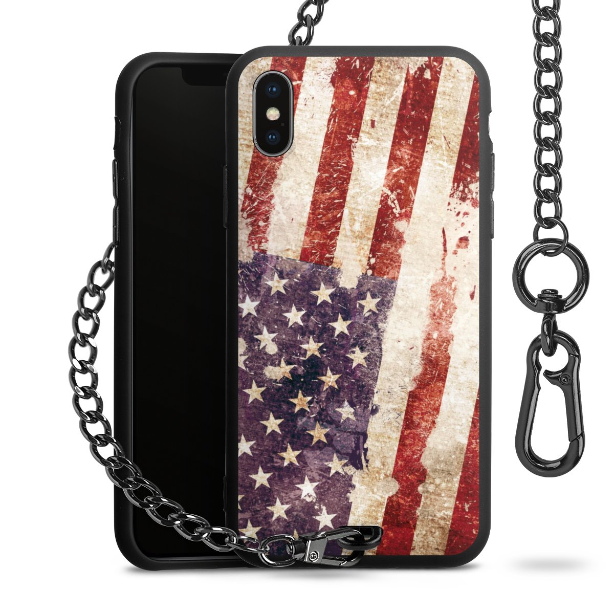 Die mattschwarze Silikon-Handyhülle besteht aus robustem TPU (thermoplastisches Polyurethan). Sie ist flexibel und schützt Dein Smartphone vor Stößen und Kratzern. Die Kette sowie der Karabinerhaken sind aus Metall in Gunmetal-Optik gefertigt. Für dieses Produkt kommen ausschließlich TÜV-geprüfte Materialien zum Einsatz.
