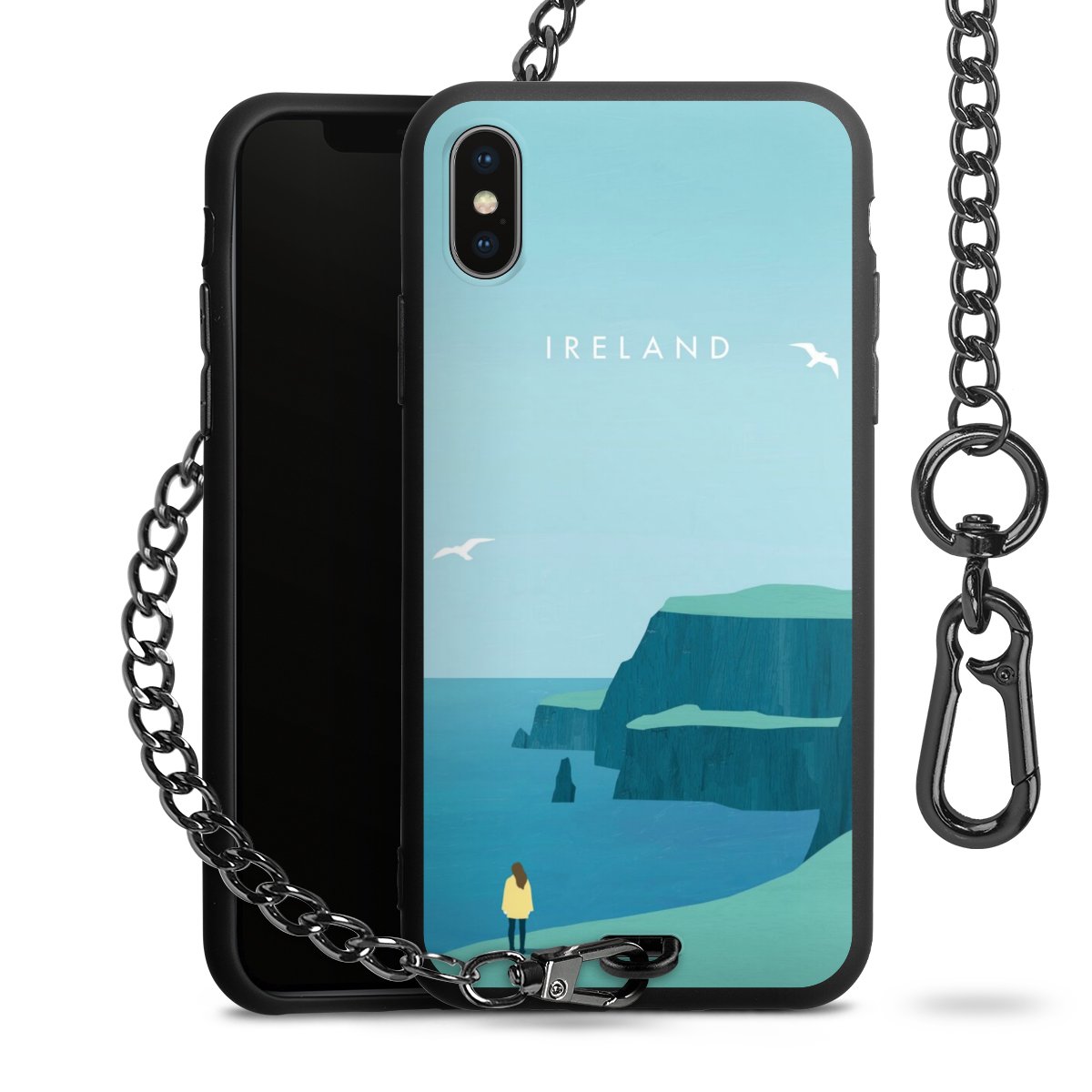 • Mattschwarze Handyhülle mit Metallkette