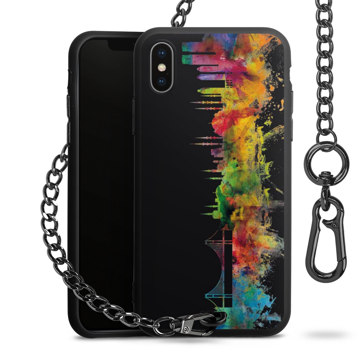 Die mattschwarze Silikon-Handyhülle besteht aus robustem TPU (thermoplastisches Polyurethan). Sie ist flexibel und schützt Dein Smartphone vor Stößen und Kratzern. Die Kette sowie der Karabinerhaken sind aus Metall in Gunmetal-Optik gefertigt. Für dieses Produkt kommen ausschließlich TÜV-geprüfte Materialien zum Einsatz.