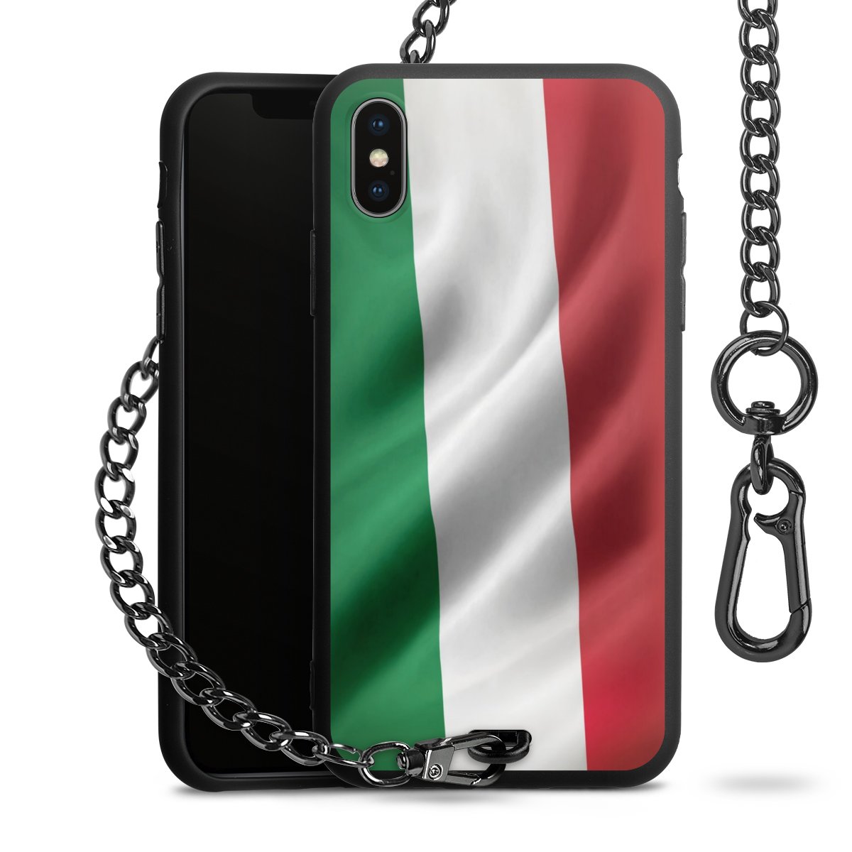 - Mattschwarze Handyhülle mit Metallkette