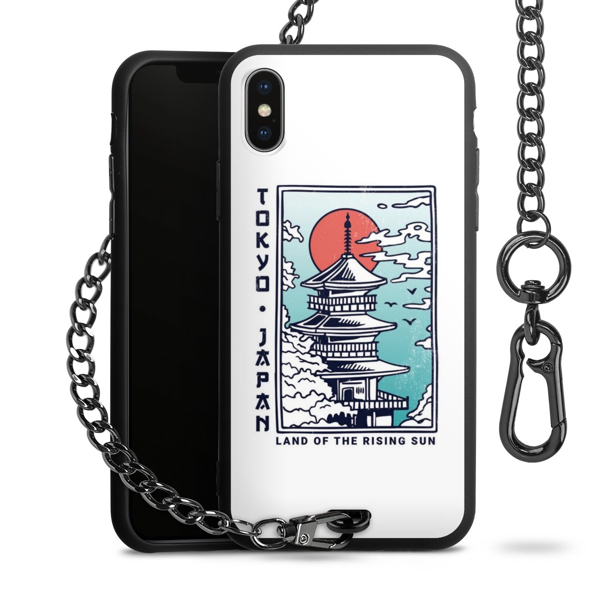 - Mattschwarze Handyhülle mit Metallkette