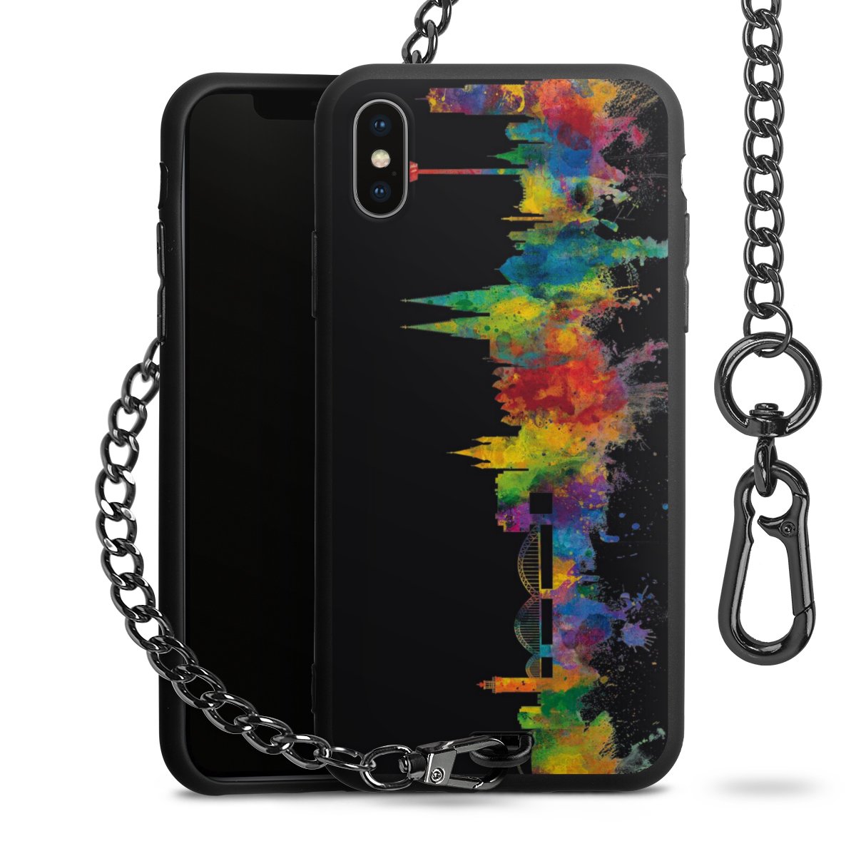 Die mattschwarze Silikon-Handyhülle besteht aus robustem TPU (thermoplastisches Polyurethan). Sie ist flexibel und schützt Dein Smartphone vor Stößen und Kratzern. Die Kette sowie der Karabinerhaken sind aus Metall in Gunmetal-Optik gefertigt. Für dieses Produkt kommen ausschließlich TÜV-geprüfte Materialien zum Einsatz.
