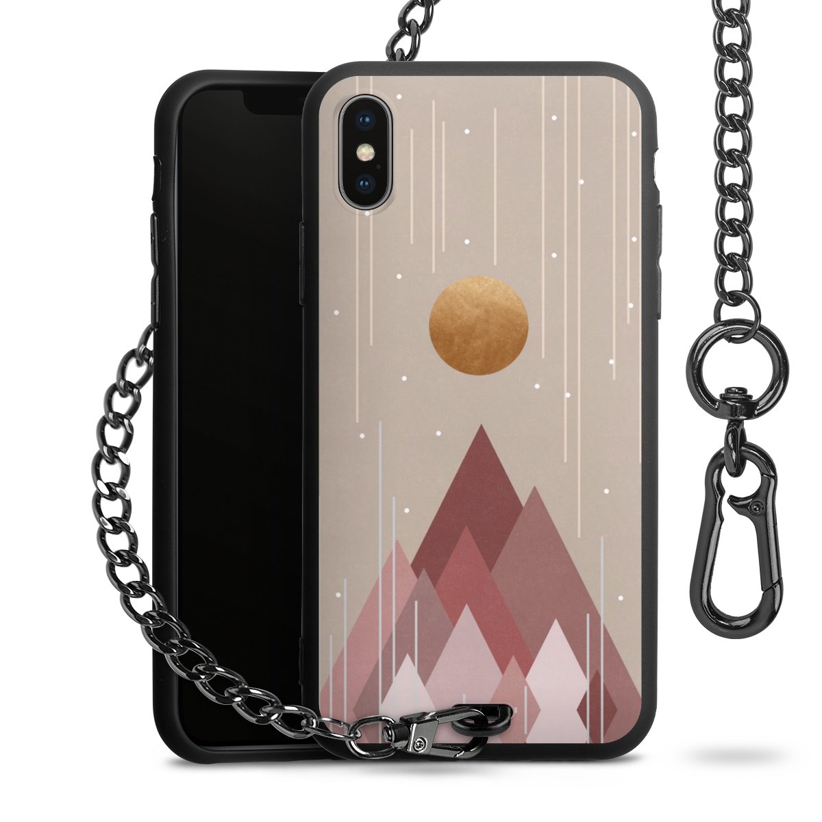• Mattschwarze Handyhülle mit Metallkette