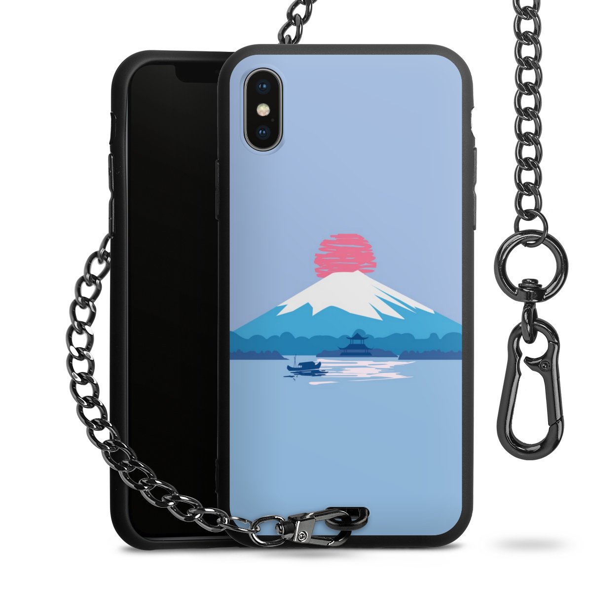- Mattschwarze Handyhülle mit Metallkette