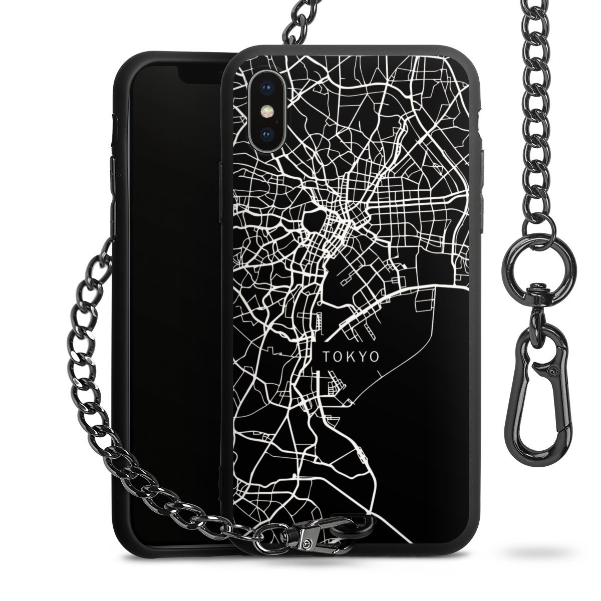 - Mattschwarze Handyhülle mit Metallkette