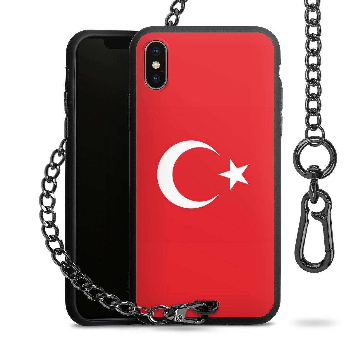 - Mattschwarze Handyhülle mit Metallkette