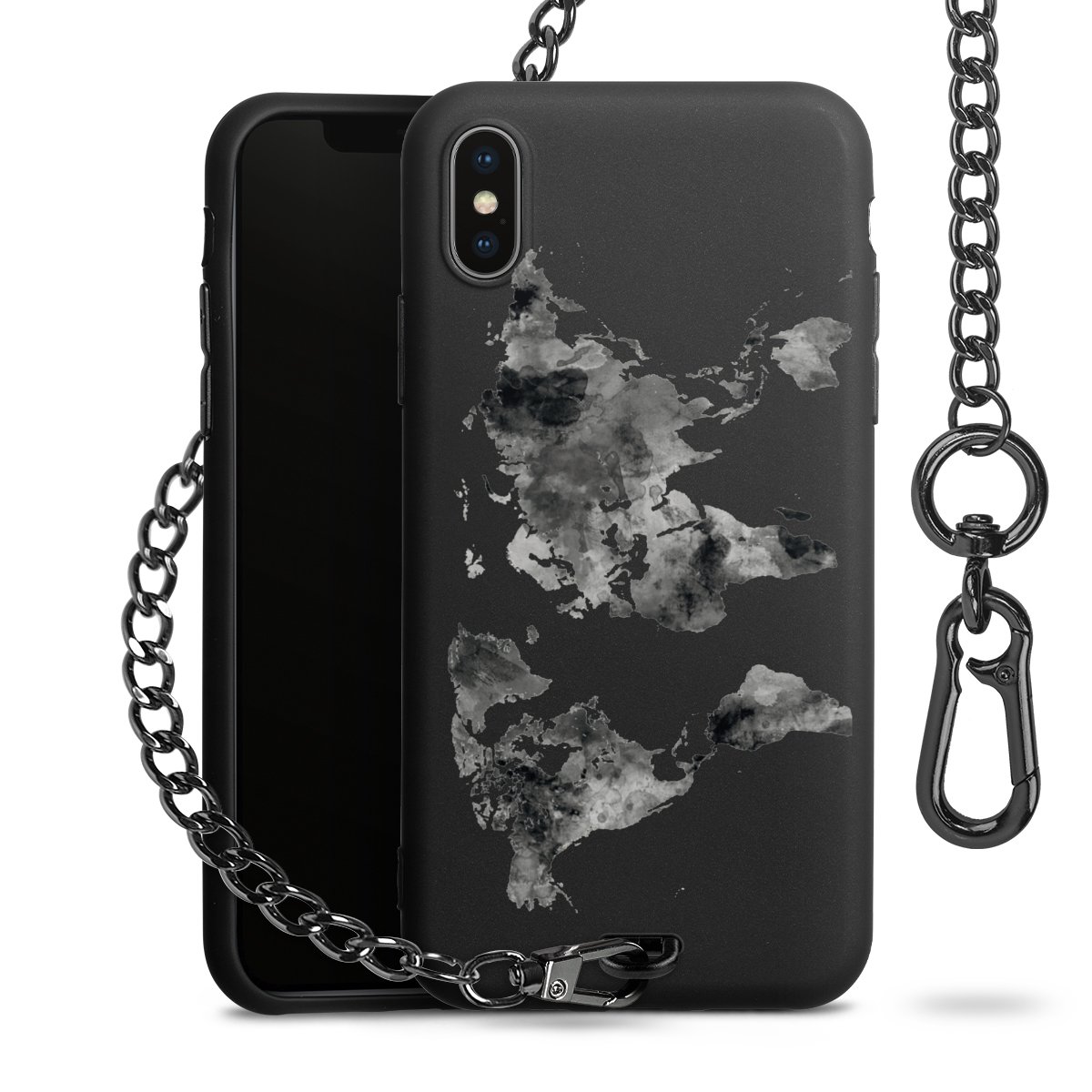 • Mattschwarze Handyhülle mit Metallkette