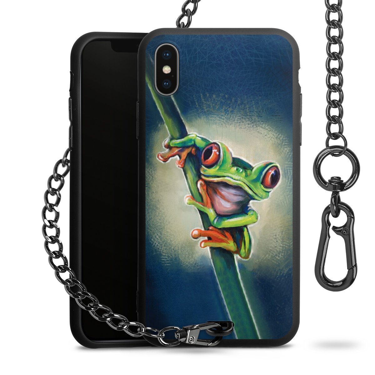 • Mattschwarze Handyhülle mit Metallkette