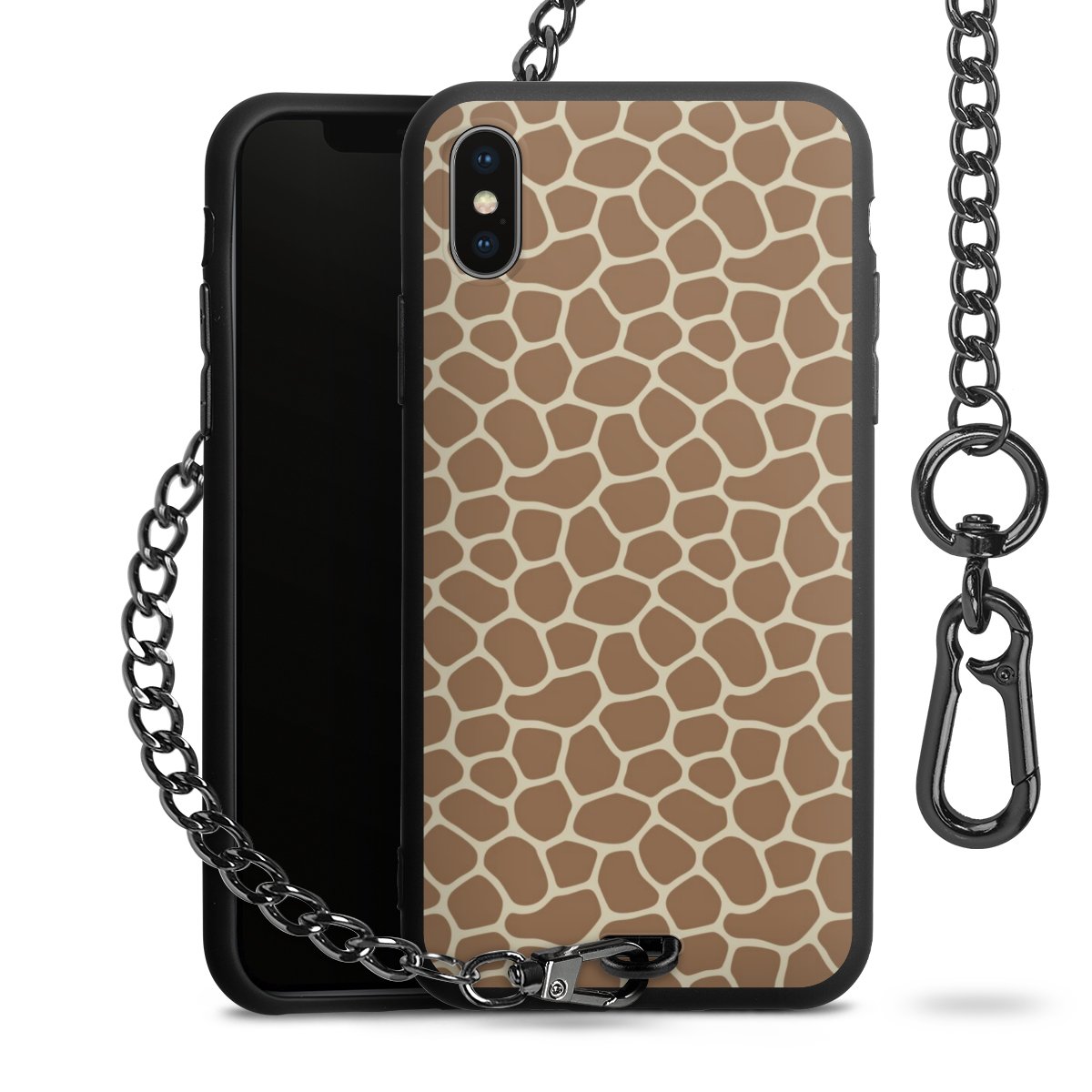 - Mattschwarze Handyhülle mit Metallkette