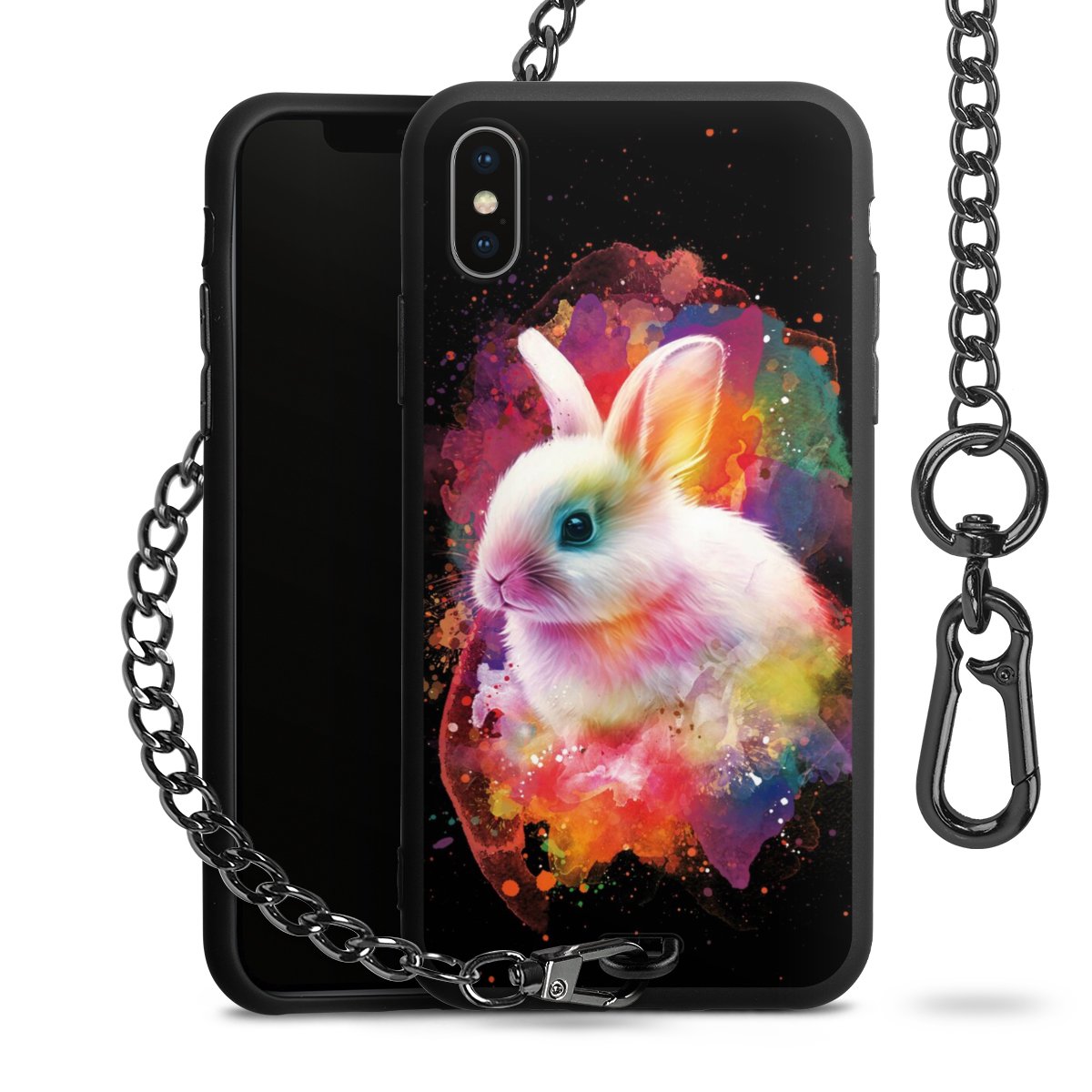 • Mattschwarze Handyhülle mit Metallkette