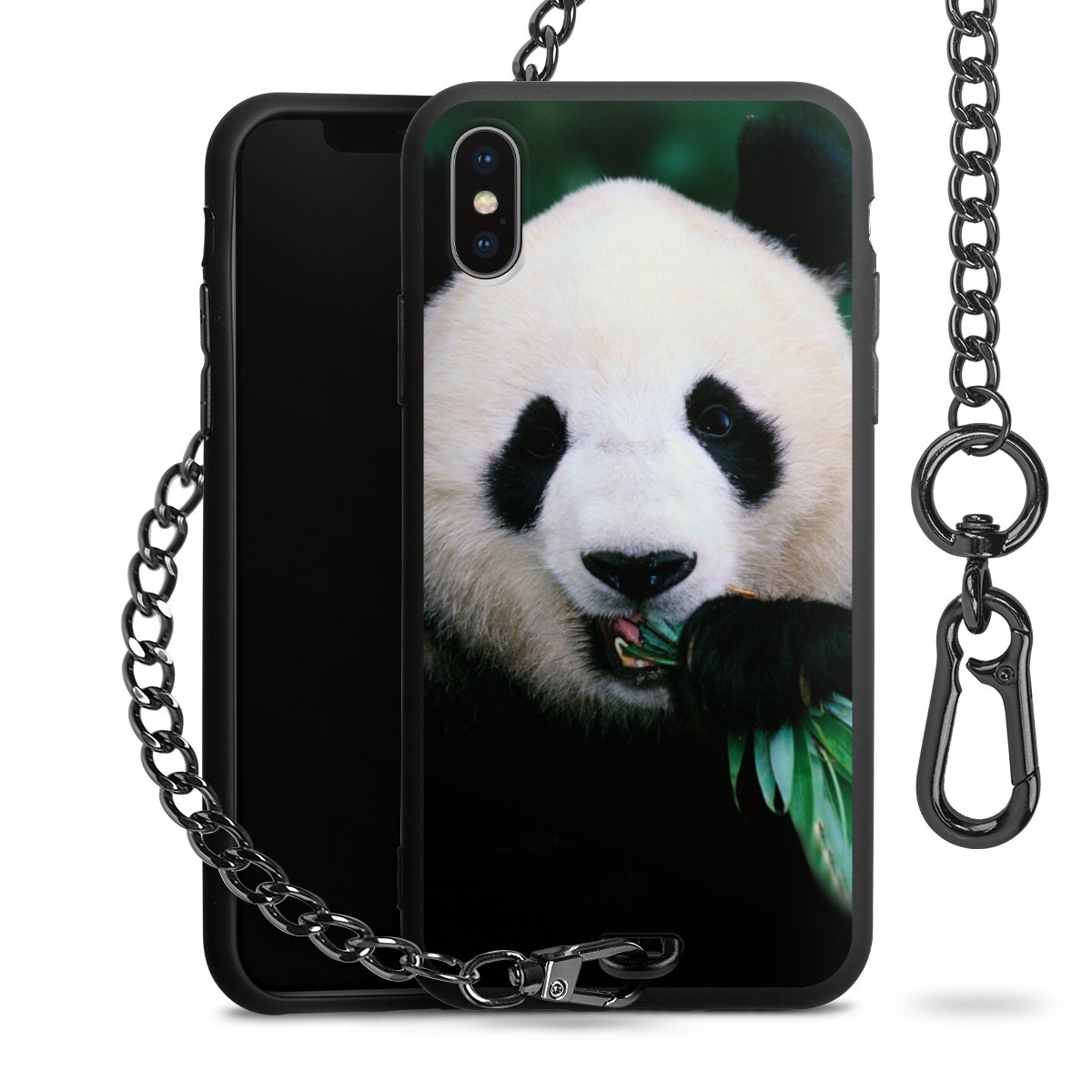 - Mattschwarze Handyhülle mit Metallkette