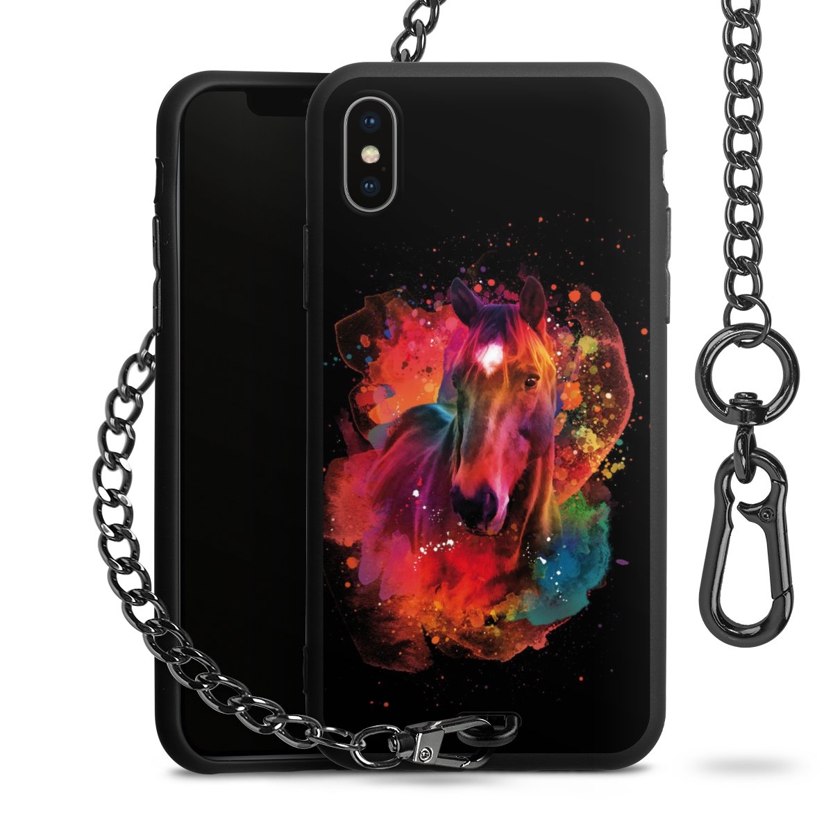 • Mattschwarze Handyhülle mit Metallkette