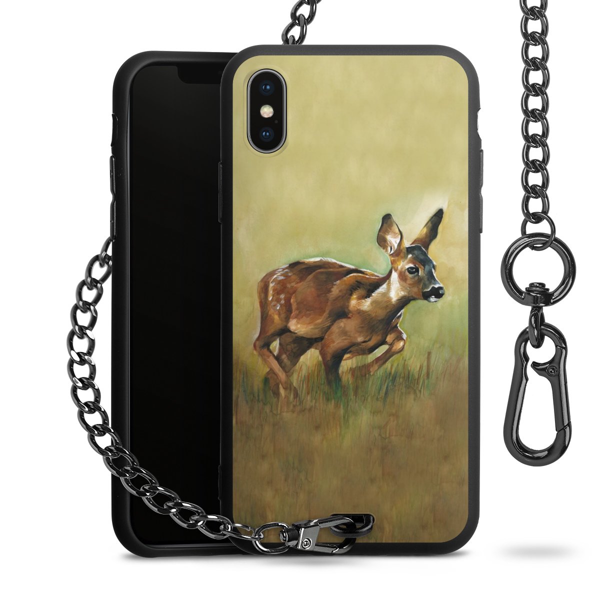 • Mattschwarze Handyhülle mit Metallkette