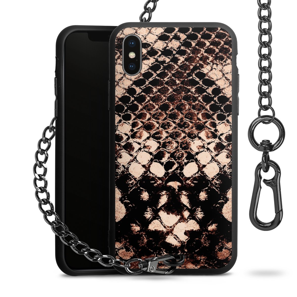 • Mattschwarze Handyhülle mit Metallkette