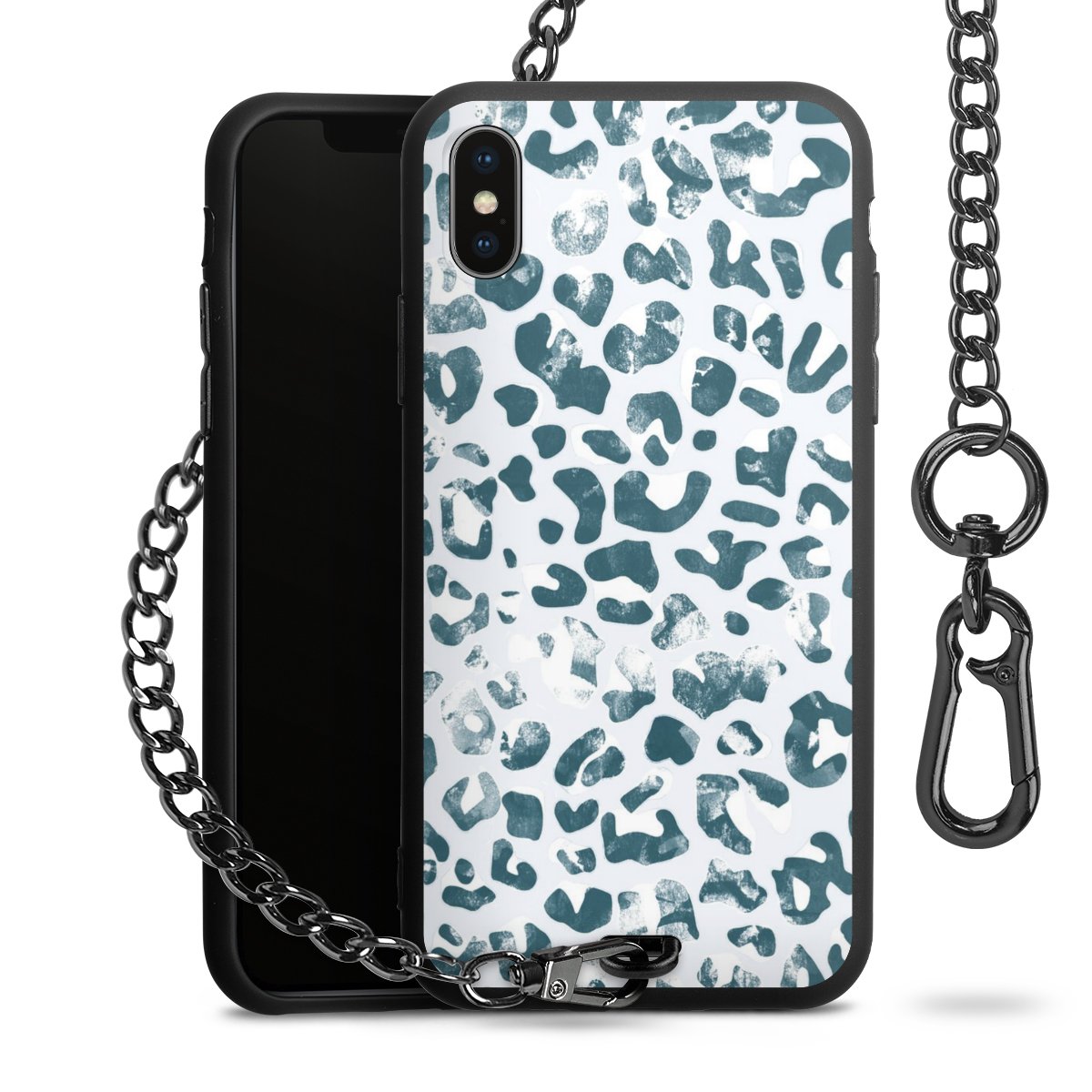 • Mattschwarze Handyhülle mit Metallkette