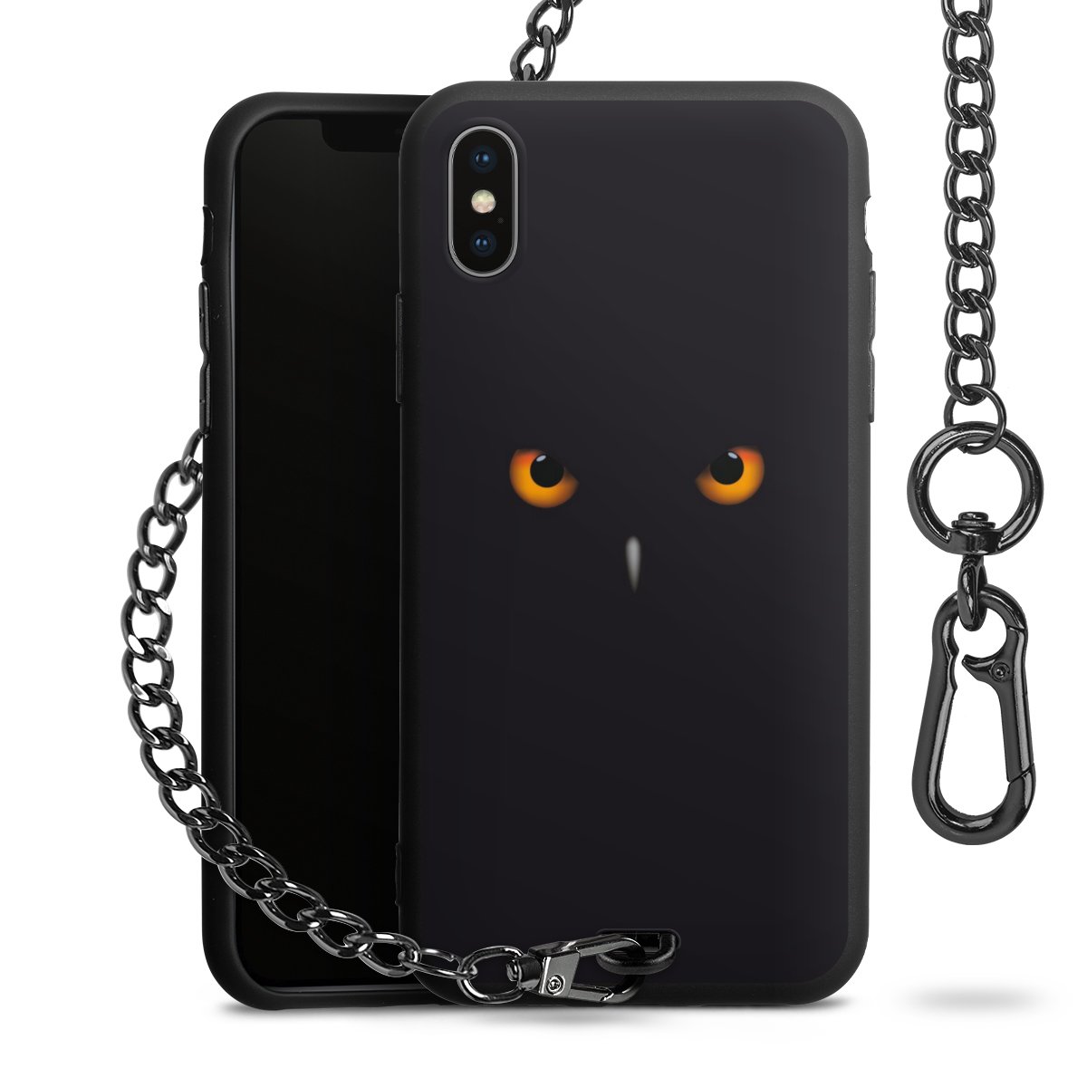 - Mattschwarze Handyhülle mit Metallkette