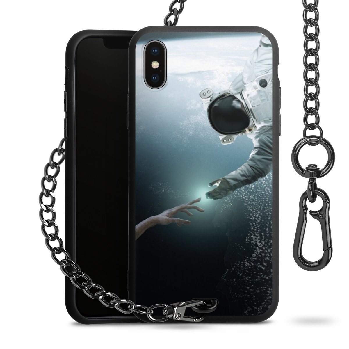 - Mattschwarze Handyhülle mit Metallkette