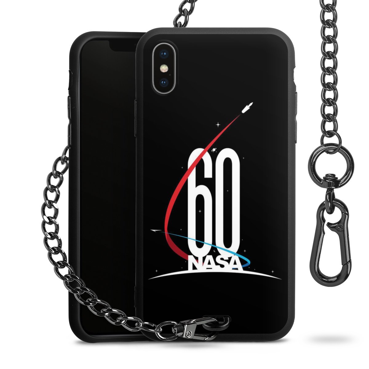 - Mattschwarze Handyhülle mit Metallkette