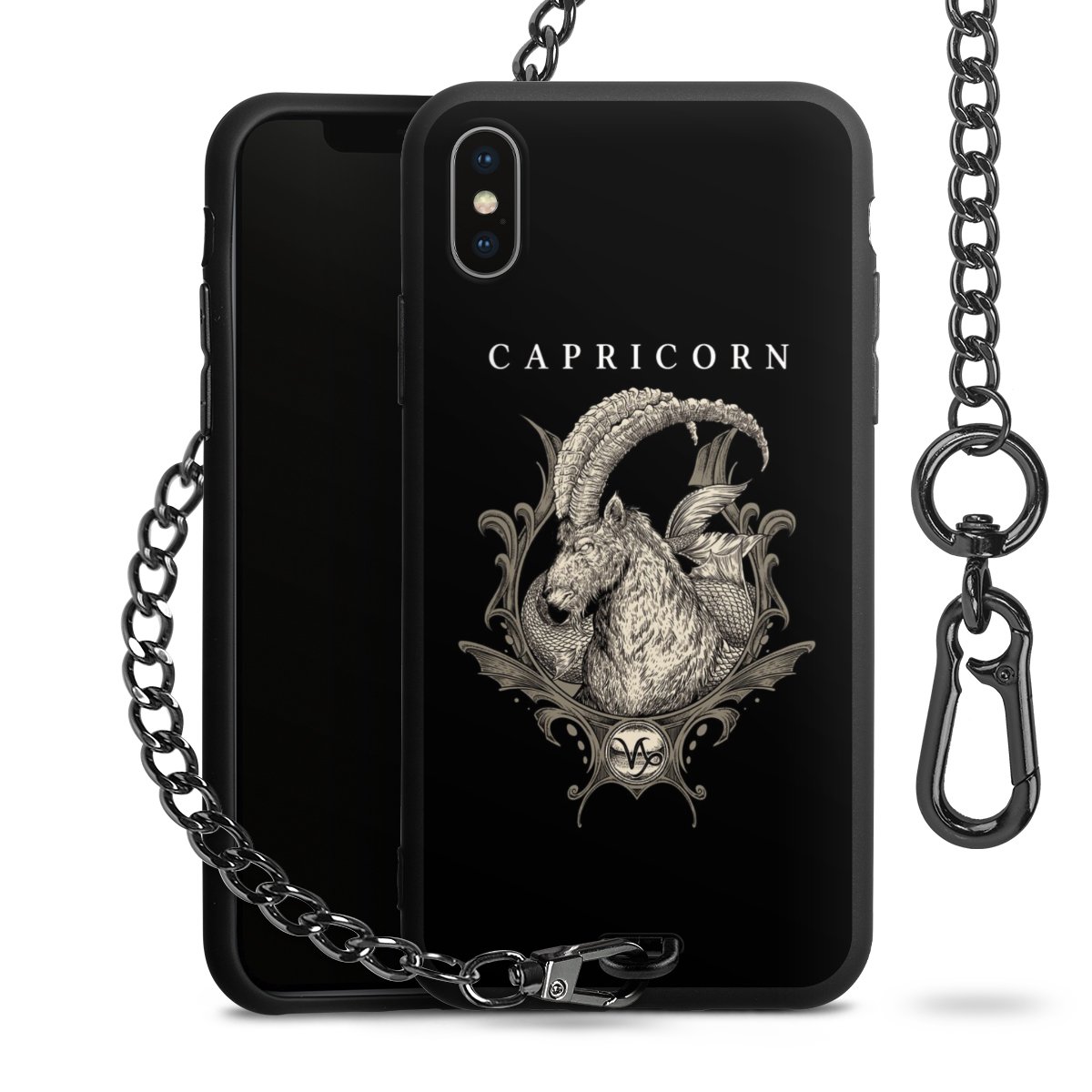 • Mattschwarze Handyhülle mit Metallkette