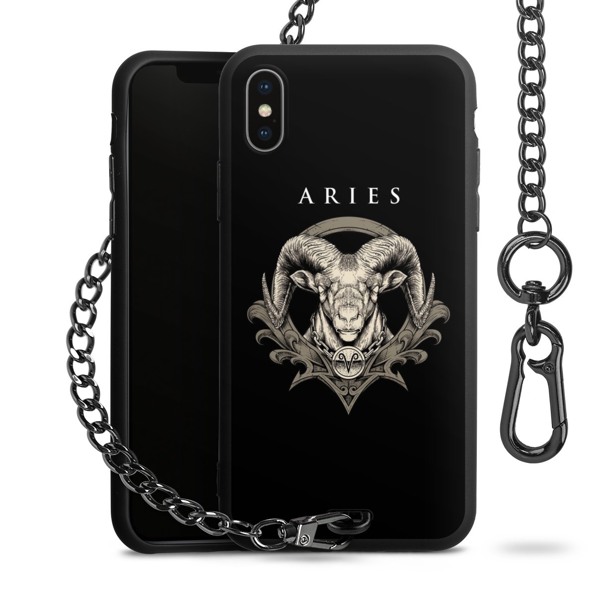 • Mattschwarze Handyhülle mit Metallkette