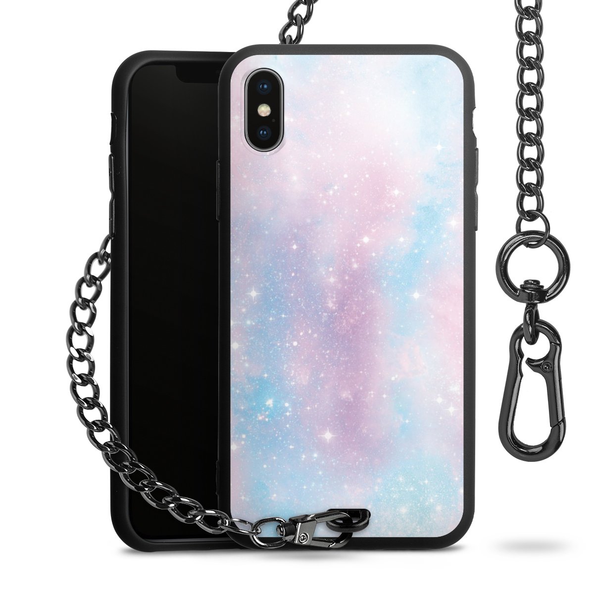 • Mattschwarze Handyhülle mit Metallkette