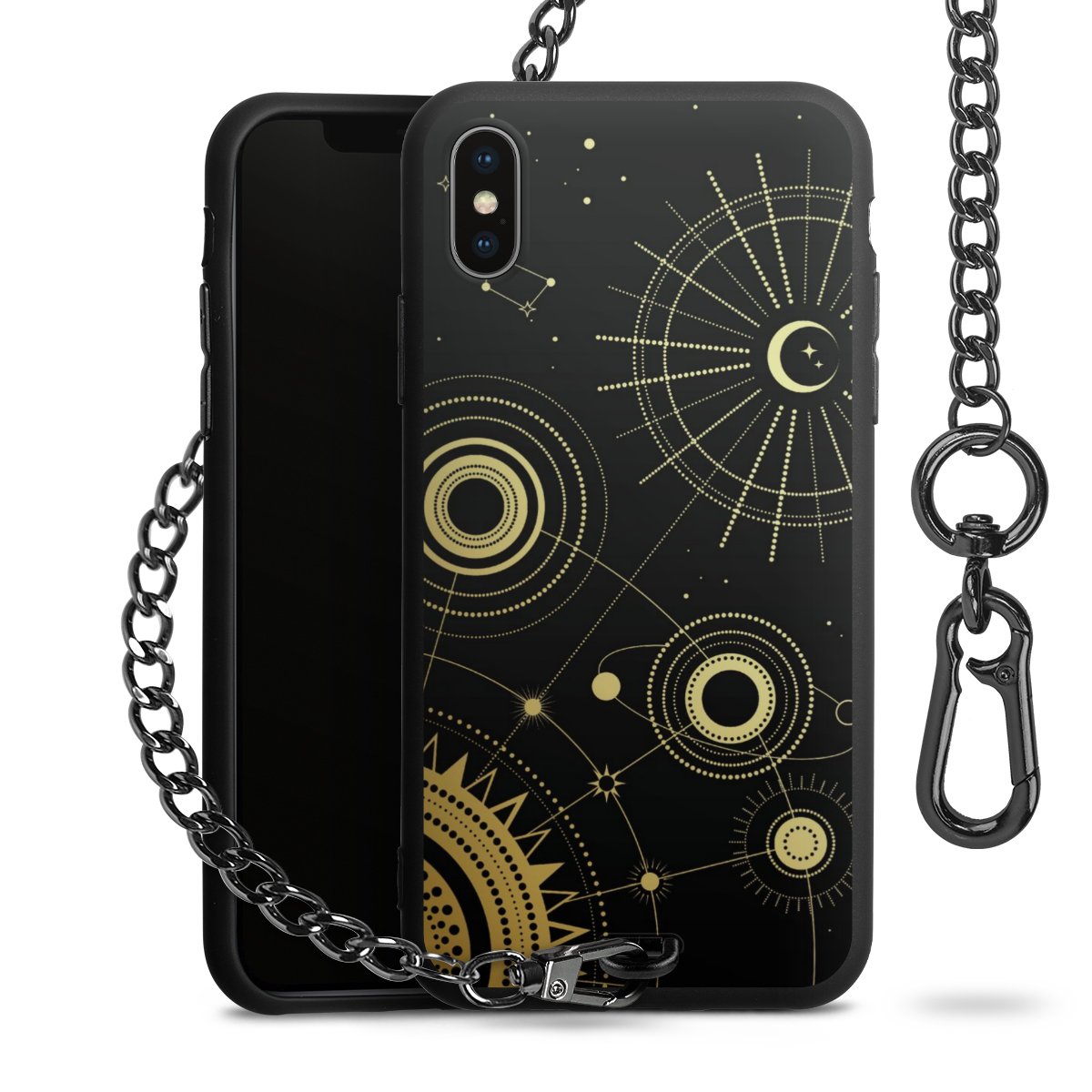 • Mattschwarze Handyhülle mit Metallkette