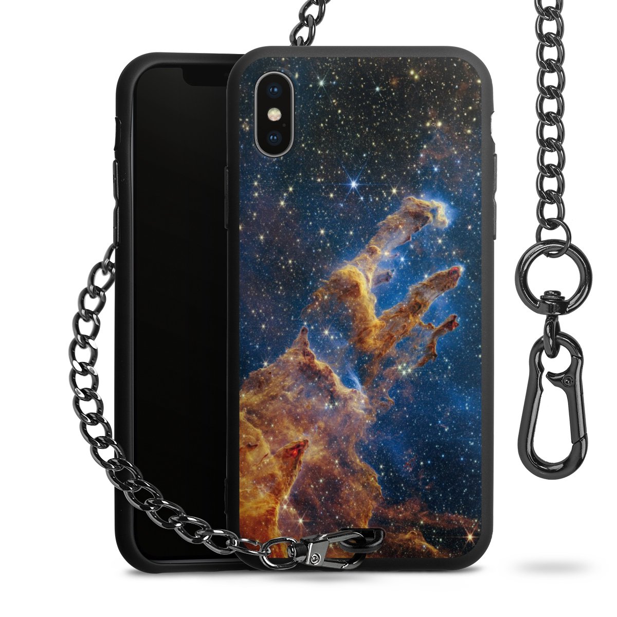 • Mattschwarze Handyhülle mit Metallkette