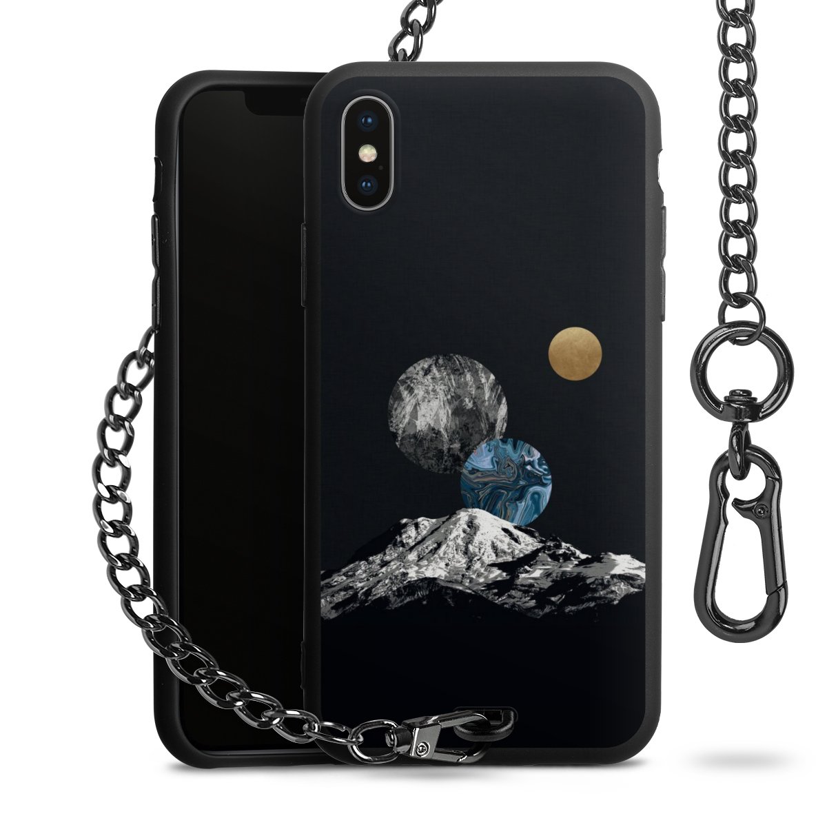 • Mattschwarze Handyhülle mit Metallkette