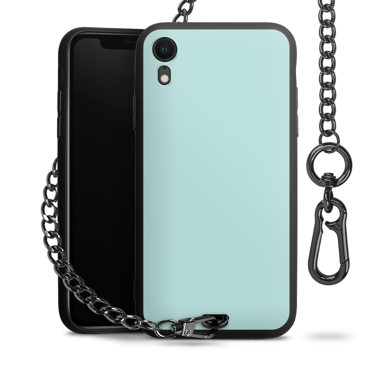 - Mattschwarze Handyhülle mit Metallkette