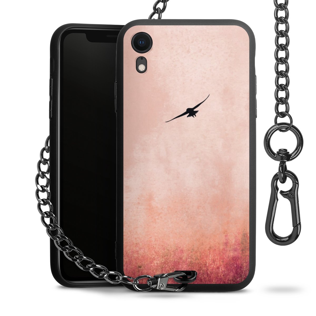 • Mattschwarze Handyhülle mit Metallkette
