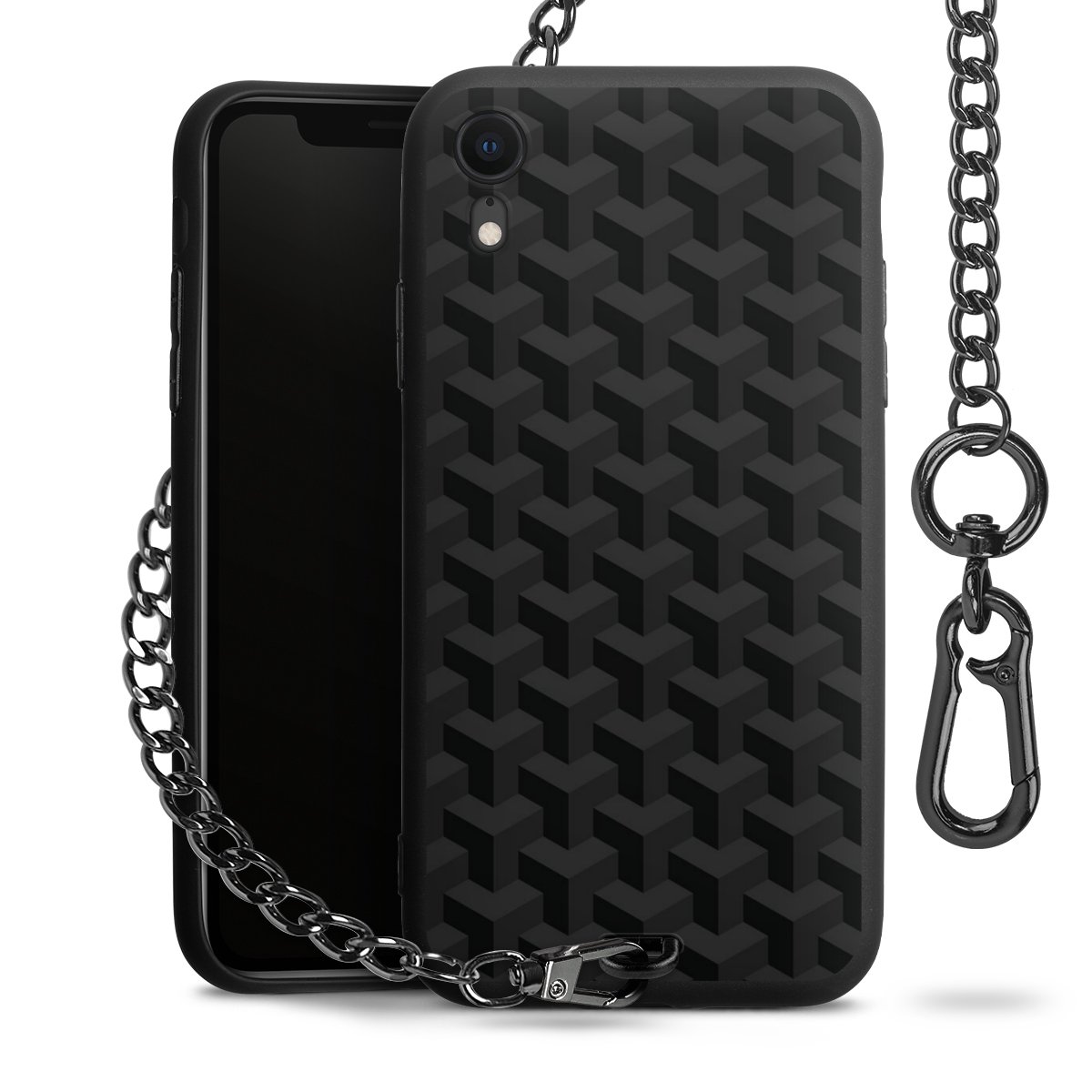- Mattschwarze Handyhülle mit Metallkette