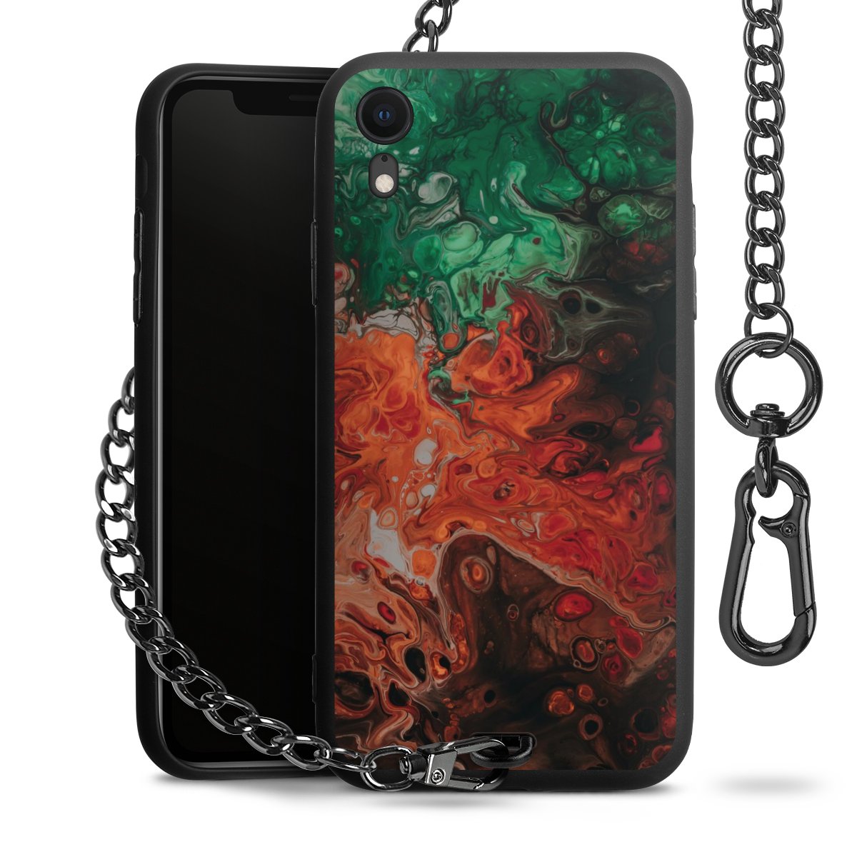 - Mattschwarze Handyhülle mit Metallkette