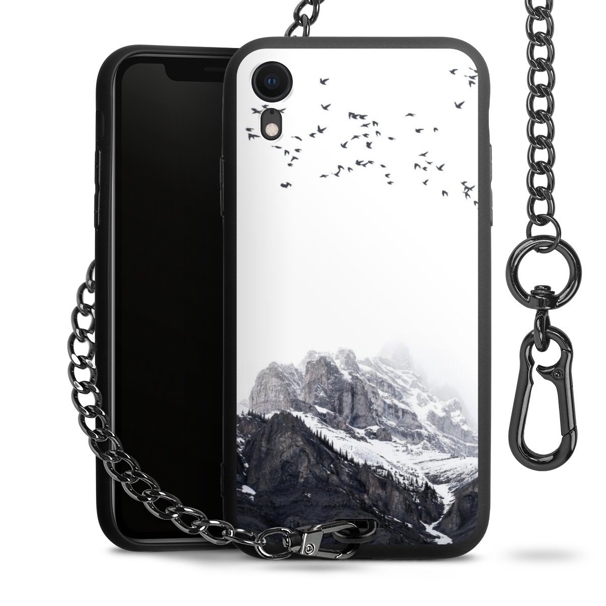 • Mattschwarze Handyhülle mit Metallkette