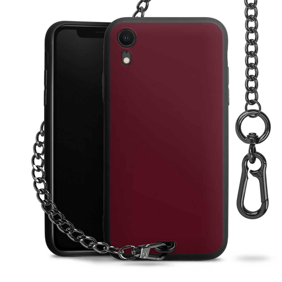 - Mattschwarze Handyhülle mit Metallkette