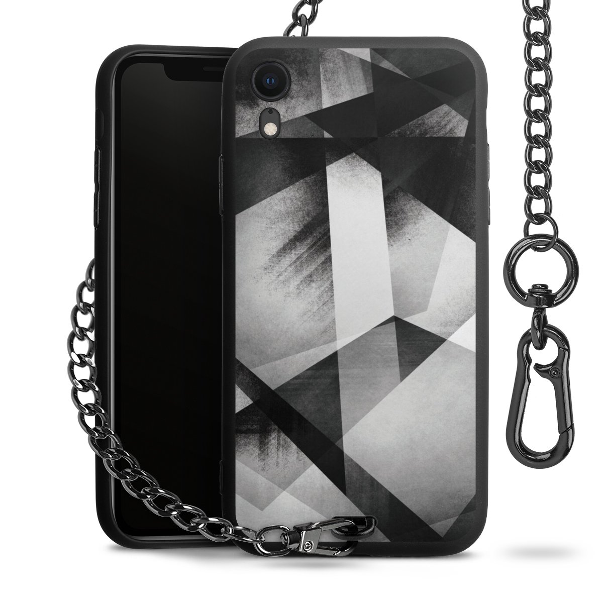 • Mattschwarze Handyhülle mit Metallkette