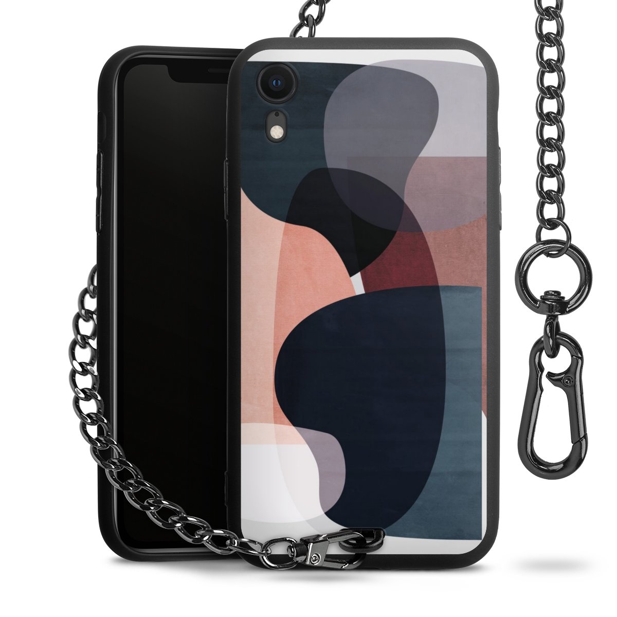 • Mattschwarze Handyhülle mit Metallkette