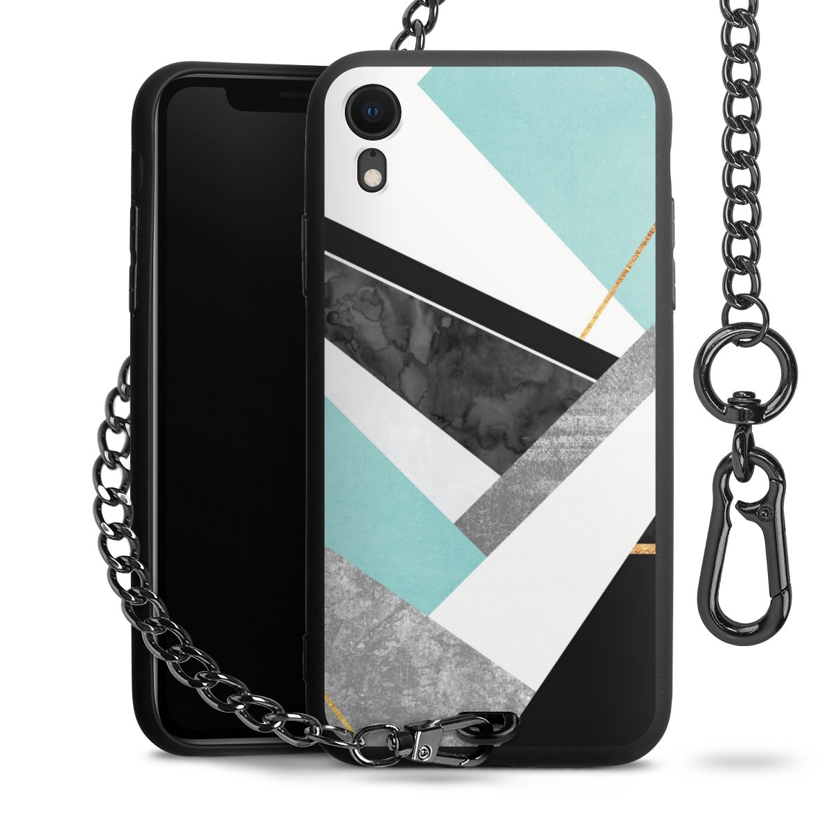 • Mattschwarze Handyhülle mit Metallkette