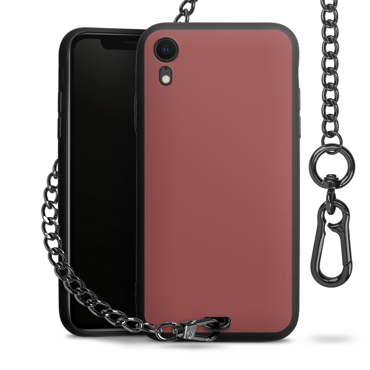 - Mattschwarze Handyhülle mit Metallkette