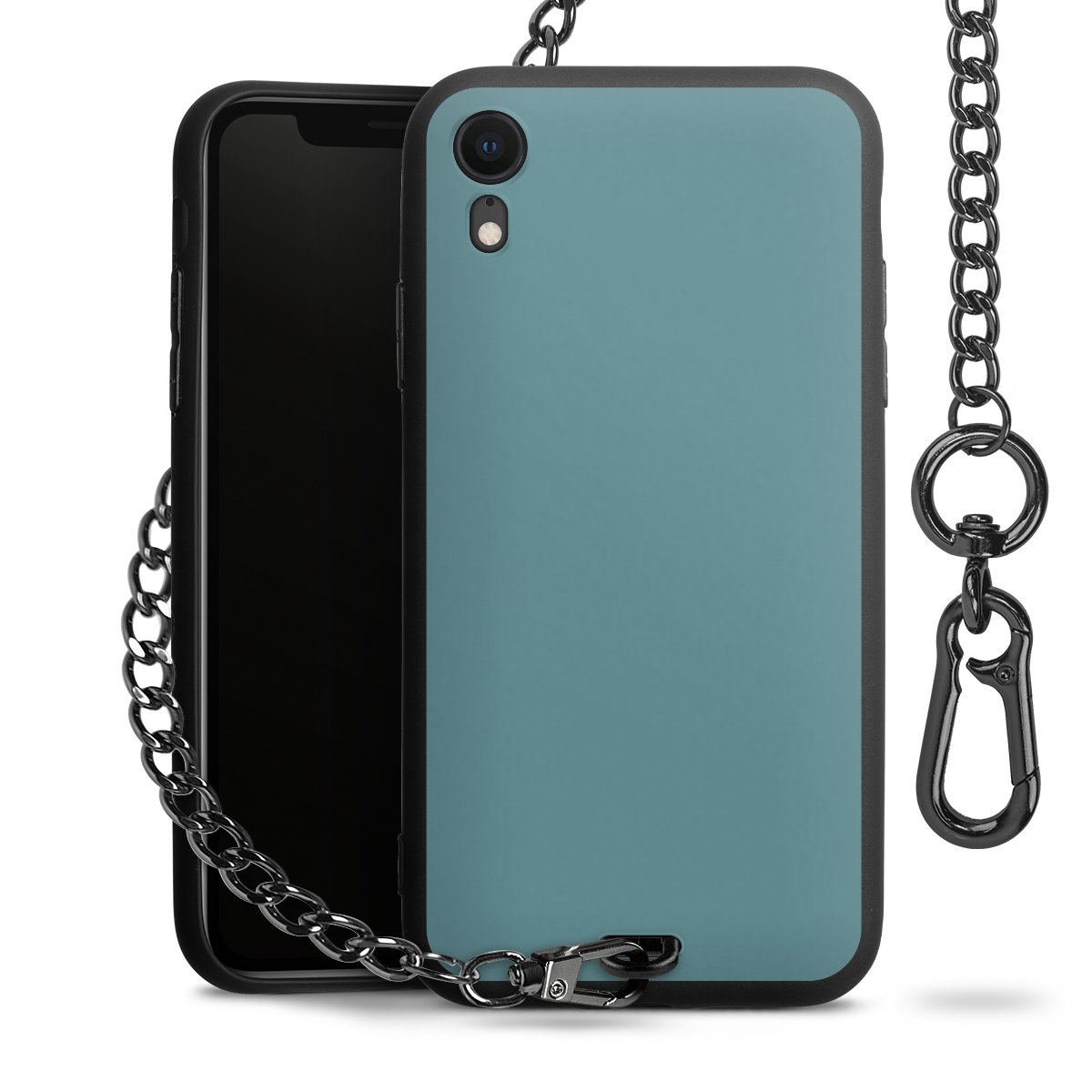 Die mattschwarze Silikon-Handyhülle besteht aus robustem TPU (thermoplastisches Polyurethan). Sie ist flexibel und schützt Dein Smartphone vor Stößen und Kratzern. Die Kette sowie der Karabinerhaken sind aus Metall in Gunmetal-Optik gefertigt. Für dieses Produkt kommen ausschließlich TÜV-geprüfte Materialien zum Einsatz.