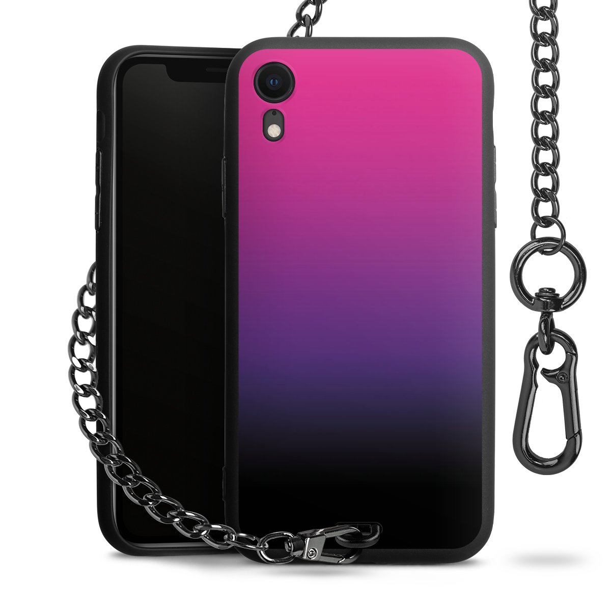 • Mattschwarze Handyhülle mit Metallkette