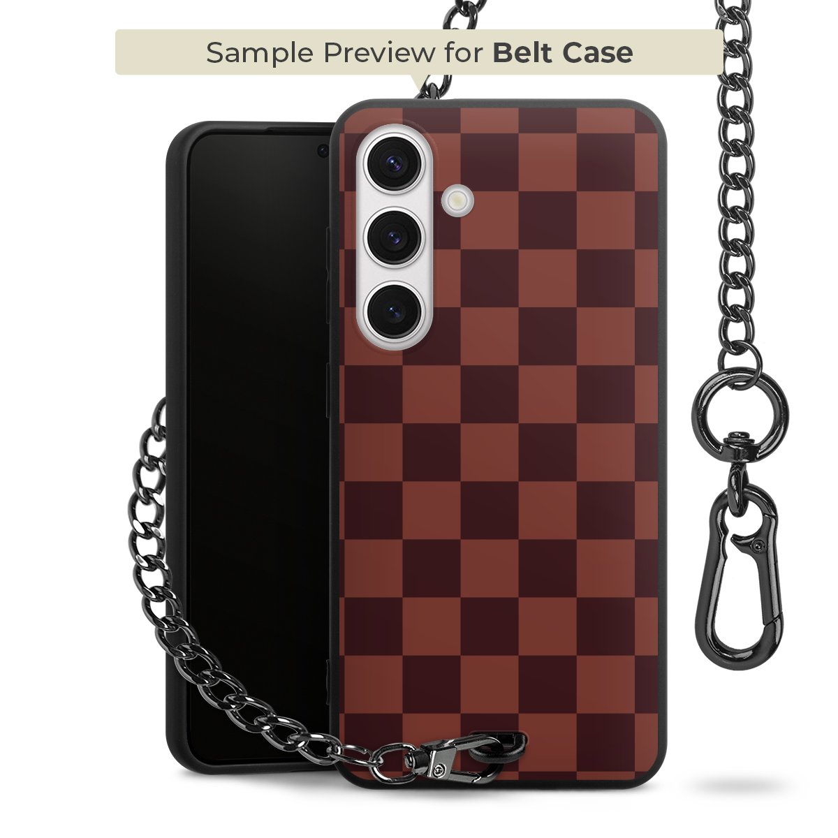 Ob im Alltag, beim Feiern mit Deinen Jungs oder auf Festivals – mit dem superpraktischen Belt Case steckst Du alle Sorgen um Diebstahl und Spider-App ganz entspannt in die Tasche. Es besteht aus einem coolen mattschwarzen Silikon Premium Case, dem Du ein individuelles Design verpassen kannst, und einer daran befestigten Kette in lässiger Gunmetal-Optik. Mit dem Karabiner auf der anderen Seite klickst Du die Kette mit einem Handgriff an Deine Gürtelschlaufe und schon ist Dein Smartphone sicher und stets griffbereit in der Hosentasche verstaut.