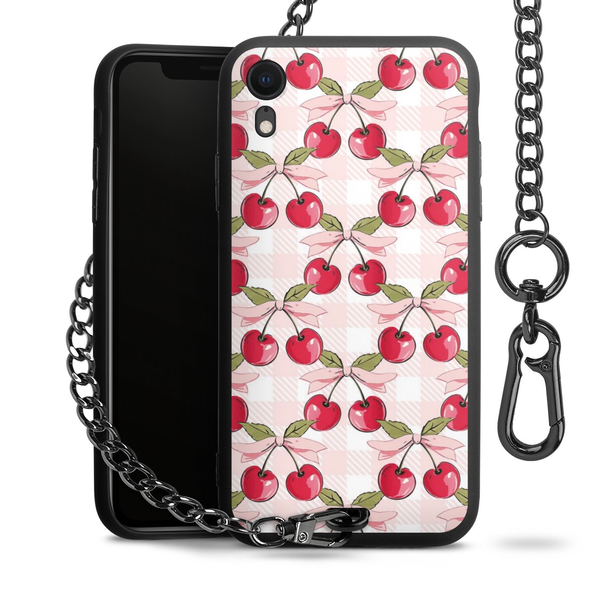 • Mattschwarze Handyhülle mit Metallkette