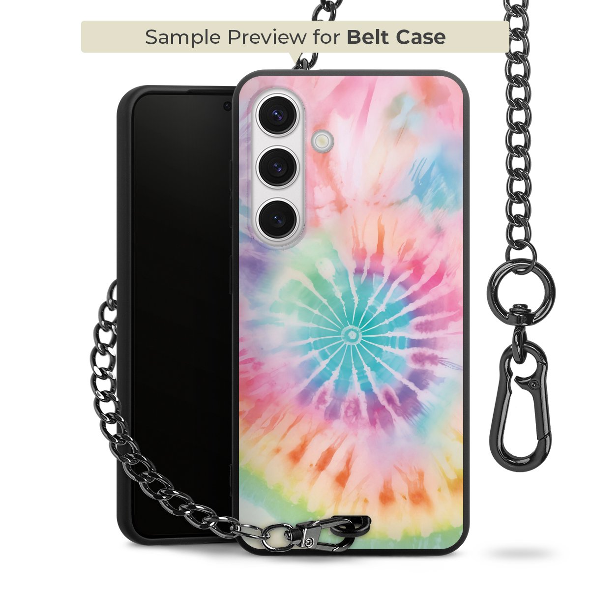 Ob im Alltag, beim Feiern mit Deinen Jungs oder auf Festivals – mit dem superpraktischen Belt Case steckst Du alle Sorgen um Diebstahl und Spider-App ganz entspannt in die Tasche. Es besteht aus einem coolen mattschwarzen Silikon Premium Case, dem Du ein individuelles Design verpassen kannst, und einer daran befestigten Kette in lässiger Gunmetal-Optik. Mit dem Karabiner auf der anderen Seite klickst Du die Kette mit einem Handgriff an Deine Gürtelschlaufe und schon ist Dein Smartphone sicher und stets griffbereit in der Hosentasche verstaut.
