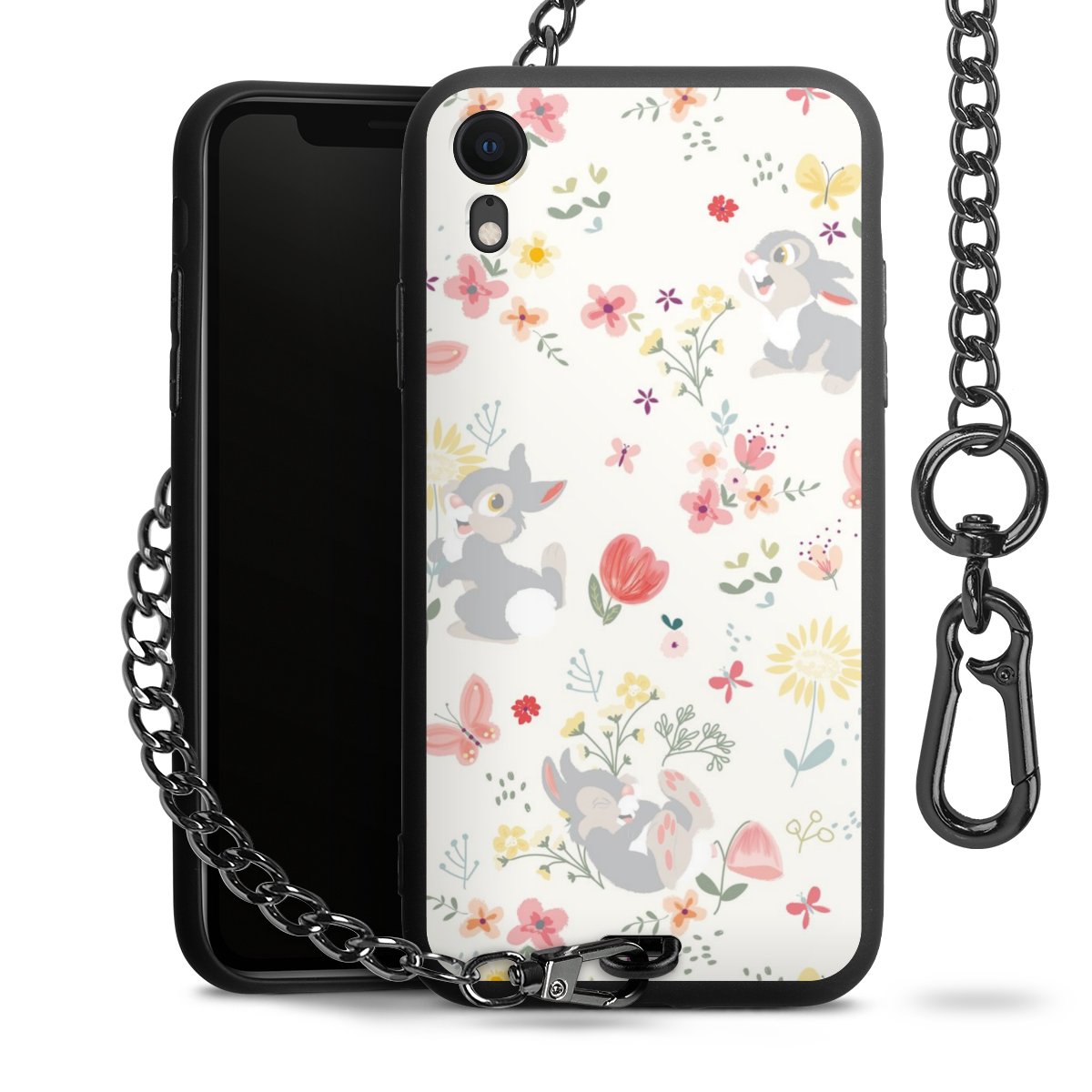 • Mattschwarze Handyhülle mit Metallkette