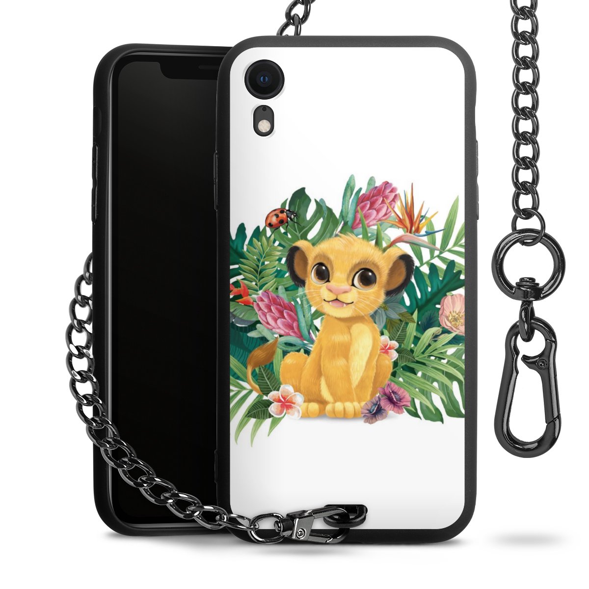 Die Handyhülle verfügt über eine mittig am unteren Rand platzierte Öse, an der die Metallkette stabil befestigt ist. Bestelle die Hülle einfach für Dein Smartphone-Modell, dann passt sie wie angegossen und Du brauchst sie bloß einmal anzudrücken. Handy in die Tasche, Karabiner an den Hosenbund – schon kann die Party starten.