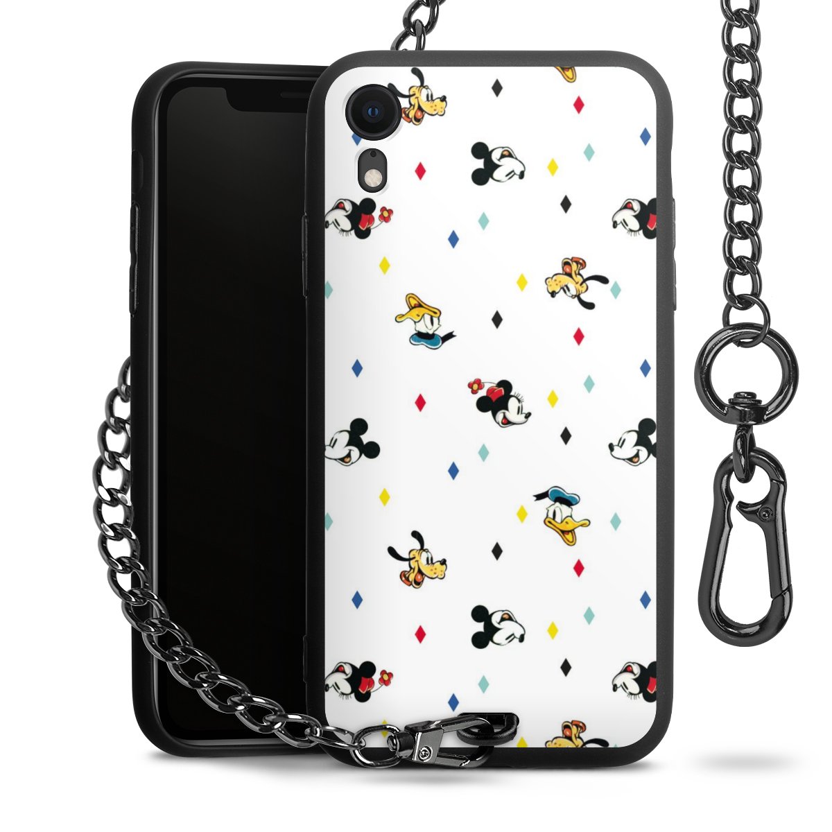• Mattschwarze Handyhülle mit Metallkette